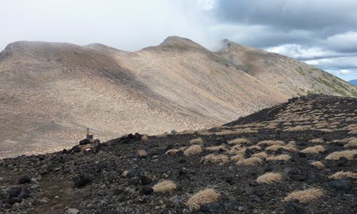 望岳台(6:20)ー(7:15)雲の平分岐ー(8:30)ポンピ沢ー(9:20)稜線分岐ー(10:10)美瑛富士分岐 ー(11:15)美瑛岳山頂ー(11:25)十勝岳分岐(11:30)ー(12:20)鋸岳裏尾根ー(13:25)十勝岳(13:45) ー(15:00)十勝岳避難小屋ー(15:50)望岳台 登り(望岳台ー美瑛岳)4:55 縦走 (美瑛岳ー十勝岳)1:55 下り(十勝岳ー望岳台)2:02 全行程9:30 |