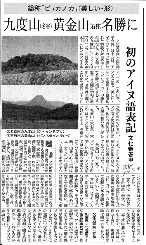 この二つの山はユーカラに謡われ、美しい形で、名勝に指定される見込みという。先住民族であるアイヌの人々が、敬った自然を私達も学び、理解していくことは、大切なことと思う。このことが観光地が増えるということではなく、美しい自然を残すとういことに寄与することを願う。