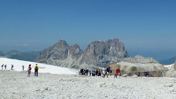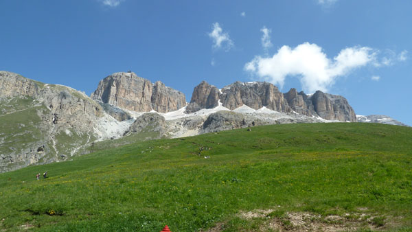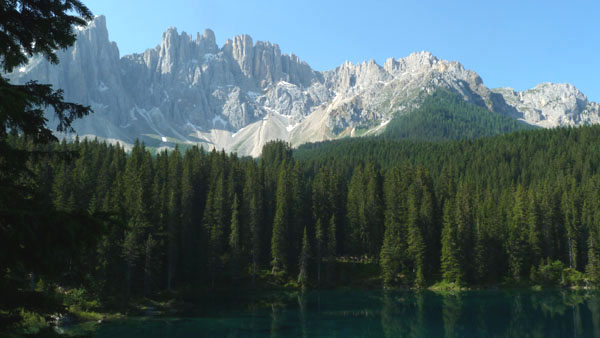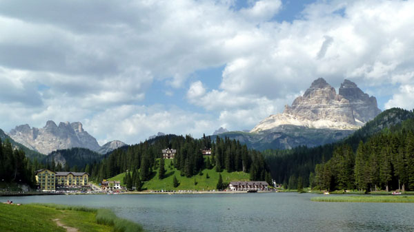 いよいよボルツァーノからこの旅行最大の見どころドロミテ街道を行く。天候は良い。まず、神秘の湖 、エメラルドグリーンのカレッツァ湖。 ![]() ( エメラルドグリーンのカレッツァ湖。背後に聳えるラテマール山群がすばらしい ) ( エメラルドグリーンの湖面に映る岩峰 ) カレッツァ湖を一周する。 感動の余韻を残しポルドイ峠へ向かう。車窓からドロミテの山々を楽しむ。 ボルドイ峠に着く。 ( ポルドイ峠 ) さらにそこからロープウエイで岩峰の上サッス・ボルドイへ。 そこは峠の緑とは異質の雪の残る広大な岩の平原だった。 雪の中を歩いて岩の上を散索する。別天地だ。 ( ドロミテのテラスと言われるサッソ・ボルドイ 2950m ) ![]() ボルドイ峠をあとにドロミテの真珠 ミズリーナ湖に行く。正面に特異な岩峰 トレ・チメ(三つの峰の意)。ここからは二つのピークしか見えない。ドロミテのシンボルの岩峰で、新田次郎の小説「三つの嶺」の舞台となった。 ( ドロミテの真珠 ミズリーナ湖 ) これでドロミテの旅も終り。最後の宿泊地コルチナ・ダンペッツォに向かう。この都市はドロミテの中心拠点。1956年の冬季オリンピックが開かれ、トニーザイラーの三冠と猪谷千春の銀メダルの活躍で有名。 ![]() ( ドロミテの中心拠点コルチナ・ダンペッツォ ) |