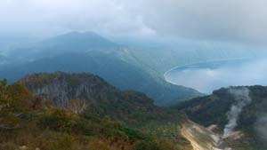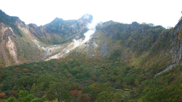 天気が晴れの予報で札幌近郊の山・恵庭岳を目指す。恵庭岳は札幌のいろいろな場所からその姿を見ることができるが、夫婦登山では登っていないので挑戦する。 登山口は札幌ー支笏湖線の支笏湖のそば、丸駒温泉の曲がり角にある。到着した時刻には5−6台の車が駐車していた。登山届の小屋のところに山頂部への登山禁止の注意書きがある。第2見晴台からの先は登山禁止である。 ![]() ( 登山口と駐車スペース) (山頂部への登山禁止の注意書き) 平坦な道を少し行くと左に登りが始まる。これからはずっと単調な登りがつづく。黄葉の林、秋の風情。ツバメノオモトの群落があり、黒い実をつけている。 長い急なロープ場が出現。左が登りのロープルート。右にも下りのロープルートがある。 ( 黄葉の林の中の登山道 ) ![]() ( ツバメノオモトの実) ( 急斜面のロープ ) ロープ場を過ぎると急に展望が開ける。第一見晴台だ。爆裂火口に不安定な山頂の岩峰が聳える。眼下に支笏湖が拡がる。 ( 第一見晴台から山頂を望む ) ![]() ( 支笏湖が拡がる ) ( 第1見晴台は溶岩の上 ) 少し休んでさらに上を目指す。第2見晴台に着く。すぐ上に山頂の岩峰がある。 ( 第2見晴台から望む山頂の岩峰 ) 山頂の標識がここに置いてある。眼下に支笏湖。溶岩の壁が見える。壁のカーブが変わる場所がさっき休んだ第1見晴台だろう。 ![]() ( 山頂の標識) (支笏湖と溶岩の壁) 登山はここ第2見晴台で終り。ゆっくり休んでから下山。途中、木の間から見えたオコタンペ湖はうつくしかった。 ( オコタンペ湖 ) |