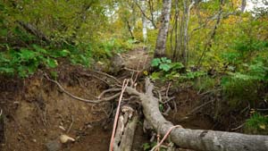 感想 : 恵庭岳は札幌のいろいろな場所からその特徴的な姿を見ることができ、魅力的な山であるが、登るには単調な登りがつづき展望も開けず、あまり快適な山ではない。林の中を、季節を感じながら登ろう。二つの見晴台は展望がいい。ただ、今回は曇りでやや残念であった。恵庭岳の本来の素晴らしさは山頂の岩峰上から見る360度の展望である。僕は2度登ったことがある。1度目は約40年前の学生のとき。2度目は平成14年。このときも山頂へは禁止の注意があったが、それほどの危険を感じることもなく登った。しかし平成15年に、さらに崩壊したとのこと。もう登ることは出来ないだろう。もし可能なら、支笏湖の対面に聳える風不死岳を望める第3展望台が出来てほしい。もしくは、危険な岩峰が崩れ、新しい山頂が早く出来てほしい。ただその時は恵庭の語源「エ・エン・イワ」(頭の・とがった・岩山)のシンボルが消えてしまうのだが・・・・。 |