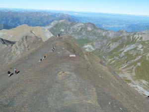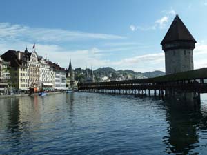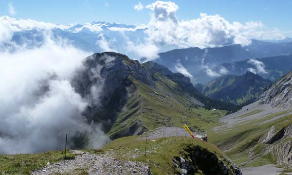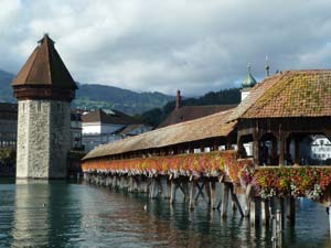 スイスの古都・ルツェルンのカペル橋は花で飾られていた。ルツェルンを観光後、郊外のピラトゥス展望台に向かう。 ![]() ( 花で飾られたカペル橋とルツェルンの街並み ) ピラトゥス展望台にはロープウェイと登山列車で登ることができる。今回はロープウェイで登って登山列車で下る経路だ。終点の駅の横には岩峰があり、10分ほどで山頂に着く。 ![]() ( ピラトゥス展望台 ) 山頂からは雄大な展望・・・雲が切れ、遠くアイガー・ユングフラウの山並みが姿を現した。 ![]() ( 雄大な展望・・・遠く雲の切れ目にアイガー・ユングフラウの山並み ) 時期は遅かったが、山頂への登山道にお花が咲いていた。きれいな色のアザミが咲いていた。日本のアザミよりは可憐だ。「あさみの歌」にはスイスのアザミが似合いそう。 ![]() ( アザミとキキョウ科の花・・ジョイフル・ブロッケンブルーメ? ) 世界一急な登山列車で下りアイガーのふもとの町グリンデルワルトに向かう。ここは目の前にアイガー が聳えている。 ![]() ![]() ( グリンデルワルトの町とアイガー ) 翌日、この旅行で大いに期待していたシルトホルン展望台へ向かう。天候は快晴だ。ロープウェイを乗り継ぎ山頂に着く。 ![]() ( ロープウェイと山頂の展望台 ) アイガー(3970m)、メンヒ(4107m)、ユングフラウ(4157m)の4000mの山々の雄大な姿に圧倒される。 ![]() ( 左からシュレックホルン、アイガー、メンヒ、ユングフラウ ) ![]() 山頂のレストラン(ピッツ・グロリア)は回転フロアになっていて、食事をしながら360度の展望を楽しむことができた。食後、ロープウェイでミューレンの町へ下る。眼下にはハイキングコースが続いている。 ![]() ( 眼下に広がる素晴らしいハイキングコース ) ミューレンは スイスらしい美しい町でハイキングコースの拠点となっているという。アイガーを眺めながら町を散策した。 ![]() ( ミューレンの町 ) |
