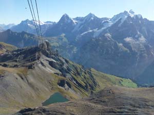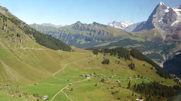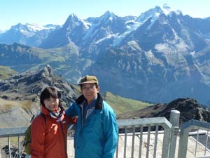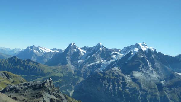 感想 : スイス三度目にしてやっと、天候に恵まれ、ベルナー・オーバーラントの山々・アイガー、メンヒ、ユングフラウを望めて幸せだった。シルトホルン展望台からの4000m展望は圧巻だ。 |
