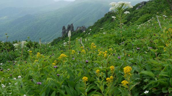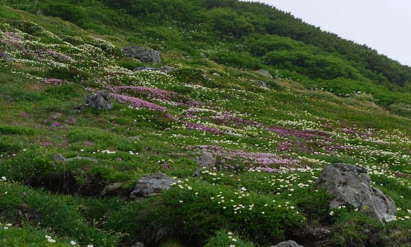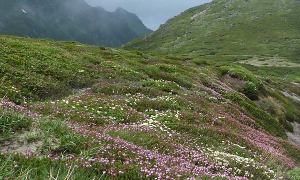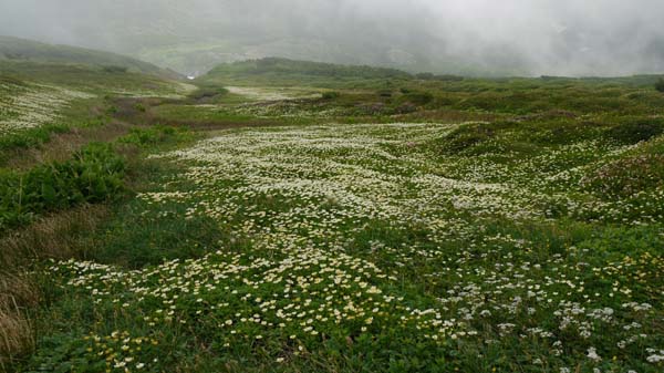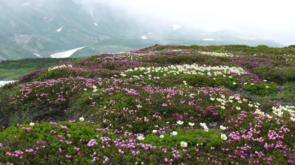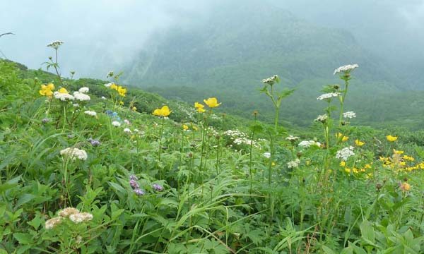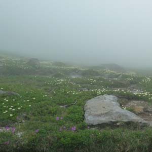 | 感想: 濃いガス、強風の中の登山ではあったが、高山植物のお花畑は美しかった。 |