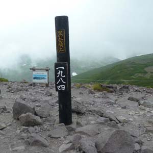 | 黒岳リフト終点7合目(7:50)ー(9:10)黒岳山頂-(9:40)黒岳石室-(10:40)お鉢平(11:10)-(12:00)黒岳石室ー(12:40)黒岳山頂ー(14:00)リフト終点7合目 行動時間 6:10 |
