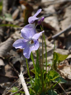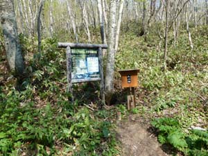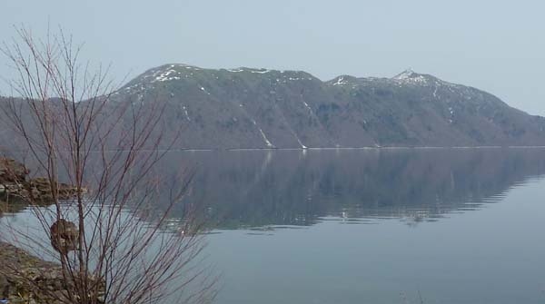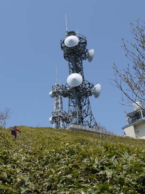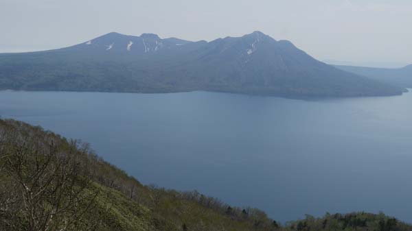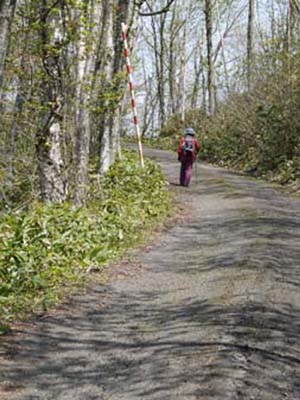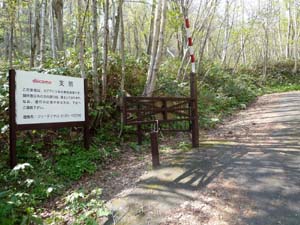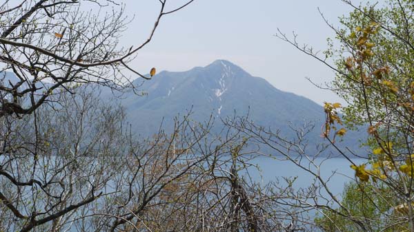 今年最初の山登り。天気がよいので、支笏湖と、恵庭岳、 樽前山、風不死岳の展望に期待して10年ぶりに紋別岳に行く。支笏湖湖畔市街地の恵庭岳方面はずれの交差点の山側に案内標識がり、少し入ると駐車場がある。10台程度は駐車可能か。広い道を少し進むと登山口に着く。ここから送電用鉄塔の下を歩く直登ルートもあったが、どうも踏み跡がはっきりしない。最近はほどんとの人が簡易舗道を登っているようだ。ゲートがひらいていたが、車で入ることは危険。車のすれ違いが難しいだろう。私たちも簡易舗道を登る。道端には春の花。いたるところにスミレが咲いている。キスミレの群落も見事。 ![]() (登山口のゲイト) ![]() (舗道を登る) (ヒメイチゲ) ![]() (ケエゾキスミレ) ![]() (ニシキゴロモ) (ミヤマスミレ) 木の間から支笏湖と風不死岳がみえてきた。 (支笏湖と風不死岳) 山頂の電波塔が見えてくる。 (山頂の電波塔) 最後の登りは送電線鉄塔の下を直登する。山頂に到着。電波塔の下に錆びた山頂の標識があった。山頂からの展望は雄大。 ![]() (鉄塔の下を直登する) (山頂の標識) (樽前山と風不死岳) (恵庭岳) コンクリートの土台で腰をおろして昼食を食べ、展望をゆっくり楽しみながら舗道をたどり下山する。 下山後、恵庭岳側の支笏湖のほとりの丸駒温泉の露天風呂に行く。電波塔のある紋別岳がはっきり見える。 (丸駒温泉から電波塔のある紋別岳を望む・・・右端) |