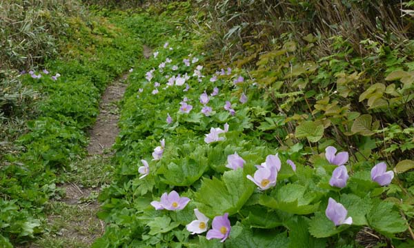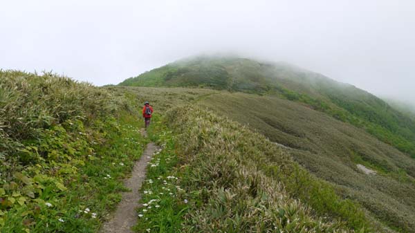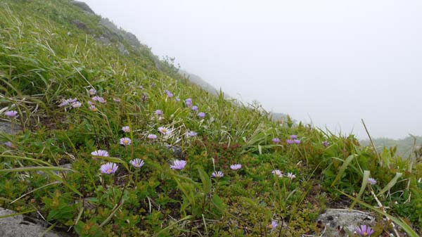 この時期、恒例になっている白樺山へ向かう。一時不通になっていた中山峠も開通し、予定通り峠に着く。今日は羊蹄山が良く見える。途中のニセコの道路は山菜採りの車がいたるところで駐車しており、今はたけのこの最盛期だ。なんとか新見峠登山口の駐車場に止める事ができた。 ![]() ( 中山峠から羊蹄山 ) ( 新見峠駐車場 ) さあ、出発。右手の目国内岳登山口のすぐ先、左手に白樺山登山口がある。。 ![]() ( 目国内岳登山口 ) ( 白樺山登山口 ) 登山道は広く歩きやすい。まわりは根曲り竹の竹藪。道端に大きなタカネザクラが満開だった。 ( 登山道と道端に聳える大きなタカネザクラ ) 道端には小さな花が咲いている。艶やかではないが、ひっそりと咲くこれらの花も美しい。 (エンレイソウ ) ( エゾイチゲ ) (ノウゴウイチゴ ) ( マイズルソウ ) (ゴゼンタチバナ ) ( ツバメオモト ) 稜線に近づくと視界が開け、目国内岳が聳える。岩内港と積丹の山やまが見える。今、話題の泊原発もはっきり分かる。もし、大きな事故が起きたら、当然、この山も登山出来なくなるだろう。 ( 目国内岳 ) ( 岩内港 ) 稜線に出る。風が強い。正面にシャクナゲ岳の山頂が見えるはずだが今日はガスって何も見えない。それでも花々が私たちを迎えてくれた。 ( 稜線の路 ) ( ハクサンボウフウ ) ( ハクサンチドリとチシマフウロ ) ( シラネアオイの群落 ) 最後の白樺岳の登り。これからはミヤマアズマギクのお花畑だ。今年は少し最盛期を過ぎて、白っぽくなっているものが多い。それでもハクサンチドリ、チシマフウロ、ミヤマオダマキとともに美しく咲き乱れている。風が強く、花が揺れて写真が撮れない。 ( ミヤマアズマギクのお花畑) お花畑が終わると山頂に着く。雪渓が残る目国内岳は見えなくなっている。遭難してもおかしくないほどの強風だ。日本海からの風がまともに吹き抜けるのだろう。休まず早々に退散する。 (白樺山の山頂 ) ![]() 下山路では風は気にならない。道端の竹藪に入り、根曲がり竹の竹の子採りをしながら下山する。竹藪の奥の方に入って探している竹の子採りのグループもいた。竹の子採りにはそれなりの完全武装が必要だ。登山装備で藪に入るとヤッケなどを破いたら大変だ。 |