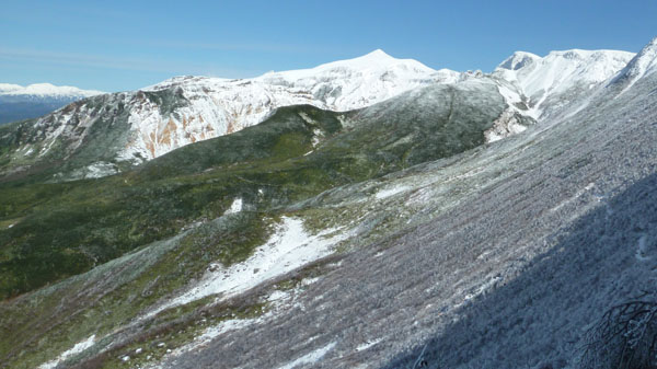 十勝岳温泉 ー 上富良野岳 ー三峰山 ー 十勝岳温泉![]() (三峰山と富良野岳) | ||