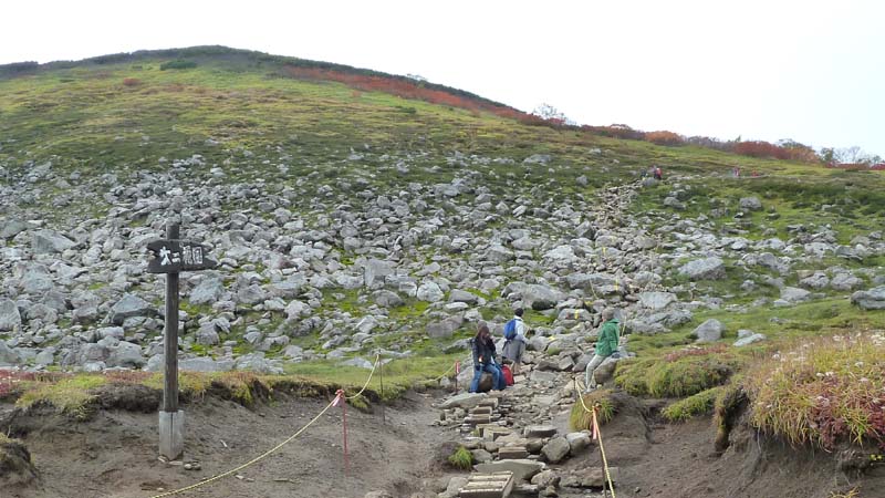 銀泉台(10:03)ー(10:33)第一花園ー(10:54)第二花園ー(11:05)奥の平ー(11:16)駒草平 ー(11:30)第三雪渓ー(12:30)赤岳ー(12:55)小泉岳ー(13:38)緑岳ー(15:08)第二花畑ー(15:16)第一花畑ー(15:26)見晴台ー(15:44)高原温泉 登り(赤岳) 2:27 下り 3:14 全行程 5:41 |