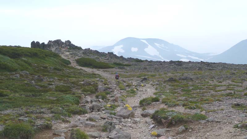 | 感想: 天候には恵まれなかったが、その分、高山植物の花は美しかった。 ここは次から次へとお花畑が現れる。 |