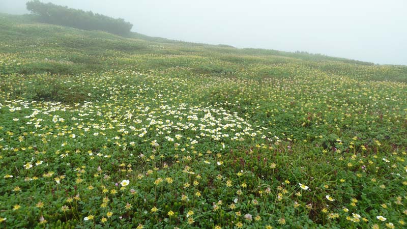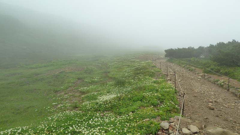 | 感想: 濃いガスの中の旭平散策、高山植物は美しかった。いつきてもここは心が和む。 |