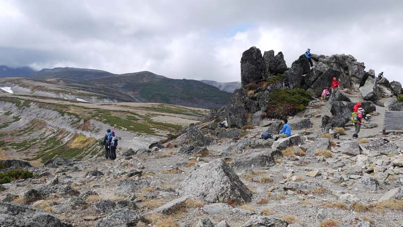銀泉台(9:15)ー(9:55)第一花園ー(10:17)第二花園ー(10:32)奥の平ー(10:46)駒草平 ー(11:00)第三雪渓ー(12:00)赤岳(12:10)ー(12:30)小泉岳ー(13:00)白雲分岐ー(13:20)緑岳ー(15:00)第二花畑 ー(15:10)第一花畑ー(15:45)高原温泉 登り(赤岳) 2:45 下り 3:35 全行程 6:30 |