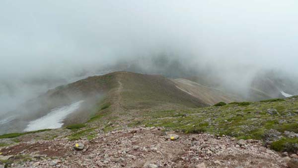 | 感想: 濃いガス、見通しの悪い登山ではあったが、登山中には雨は降らず運がよかった。 夏の終わりの最後の美しい高山植物を楽しむことが出来た。 いつか再びここに登山して雄大な大雪を眺めよう。 |