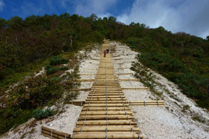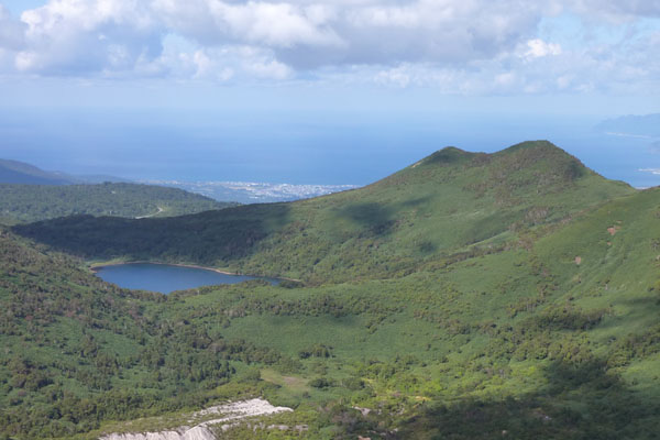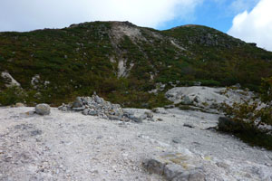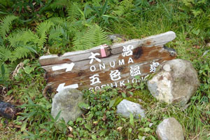 五色温泉(10:00)―(10:40)大沼分岐―火口(11:00) ―(11:10)山頂(11:20)―火口(11:35)―大沼分岐(12:00)― (12:30)五色温泉 登り 1:10 下り 1:10 全行程 2:30 |