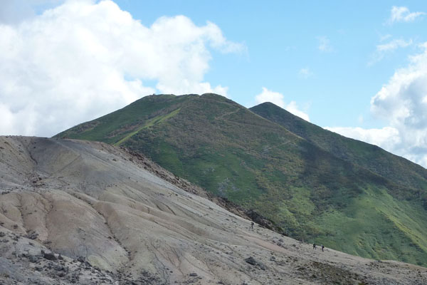 五色温泉ーイワオヌプリ![]() 平らな山頂のイワイヌプリと緑のニセコアンヌプリ、手前は火口原 |
