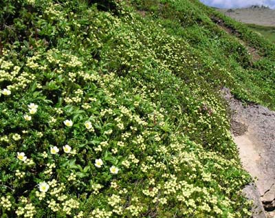 しかし観光地化された大雪なんて何の魅力もない。「神の遊び場」は汗して訪れる場所だ。 さて、赤岳にはお花畑がたくさんある。いつの時期にきても、何処かのお花畑がきっと美しく 迎えてくれるはず。駒草平のコマクサは見事。自然の中で見るのコマクサは可憐。 赤岳から、さらに30分先に進むと、小泉岳。そこまで行くと高根が原の彼方にトムラウシ山を まで大雪の全景を見ることが出来る。 |