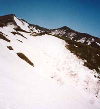 山頂までくる。五色温泉側もスキーで十分下れるが、今回すべっている
