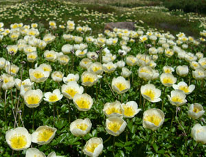 | 感想: チングルマの大群落を見に、旭平を訪問した。花の時期としては少し遅かったように思う。それでもほぼ期待通りだった。この時期に旭岳を訪問する人は、ぜひ夫婦池から5分足を延ばして チングルマの大群落を見てください。 |