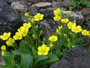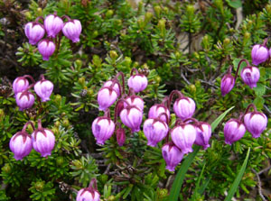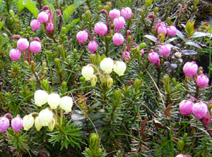 先週は「山」を見に十勝・三段山に行ったが、今週も天気が良いので「花」を見に行こう。久しぶりに大雪山・旭平のお花畑散策を計画する。たぶんチングルマが最盛期だろう。 自宅から富良野経由で4時間かかって旭岳温泉に到着。夏の最盛期にもかかわらず、待たずにすぐロープウエイに乗車できた。何度も訪れている姿見駅に着く。天候は良い。正面に旭岳が聳える。まず裾合平方面のお花畑の散策して、姿見の池を回ってロープウエイ駅に戻ろう。 ![]() ( コース概念図) 夫婦池に向かって出発。まわりにはいろいろな高山植物が咲いている。 夫婦池に着く。夫婦池はすり鉢池と鏡池の二つを合わせていう。鏡池に旭岳が姿を映している。当麻岳ー安足間岳の稜線が 聳えている。あの稜線にもチングルマの大群落がある。前に二人で歩いたことがある。 ![]() ( 鏡池に映る旭岳) ( 当麻岳ー安足間岳の稜線 ) ここから裾合平に向かうと鏡池につづく小さな湿原にワタスゲが咲いていた。 ![]() ( ワタスゲ) 夫婦池から裾合平に向かうとまもなくチングルマの大群落が現れた。 ( チングルマの大群落 赤いところはエゾノツガザクラ) ( 旭岳の雄姿とチングルマの大群落 ) 写真を撮りながらしばし見とれる。チングルマは咲き終わったものも多い。少し時期が遅いようだ。もう少し進む。 いろいろな花は咲いているが、大きな群落はないので、途中で休憩して引き返すことにする。 もう一度、チングルマの大群落を通り、夫婦池から姿見の池を目指す。旭岳には雲がかかって山頂を覆っている。 ![]() ( 登山道) ( チングルマ ) ![]() ( 姿見の池と雲の中の旭岳) ( 旭岳避難小屋 ) 姿見の池付近はたくさんの人。軽装の人が多い。ロープウエイ駅までの道のまわりもお花が咲き乱れている。ピンクのエゾノツガザクラや黄色のアオノツガザクラに混じって色があせたものとは思われない白いツガザクラも咲いていた。 いつまでもこの美しい花たちが咲き続けること心から願う。 ![]() ( キバナシャクナゲ) ( イソツツジ ) ![]() ( メアカンキンバイ) (エゾノ ツガザクラ ) ![]() ( 白花エゾノツガザクラ) ( アオノツガザクラ 黄色 ) |