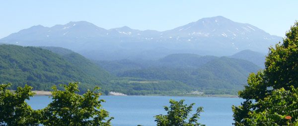 ロープウエイ駅ー裾合平ー姿見の池![]() ( 旭岳温泉への途中の忠別湖から望む旭岳・・・右:旭岳 ) |
