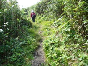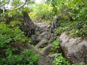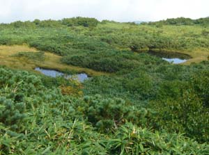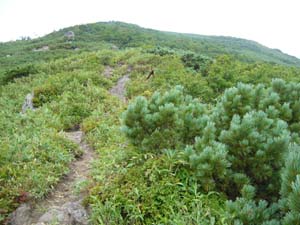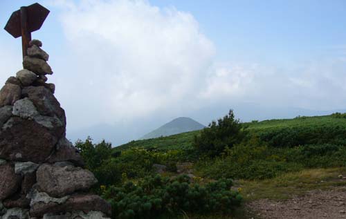 | 感想: ニトヌプリとチセヌプリのコルの登山口からのコースは簡単にチセヌプリ に登れれるが、岩がごろごろして道はかなり悪い。チセヌプリの山頂は広く、山頂の雰囲気は少ない。見晴らしもいまいち だが、笹の道、岩の道、高原の道、ハイマツのトンネルと、登山道の変化は楽しめる。 |