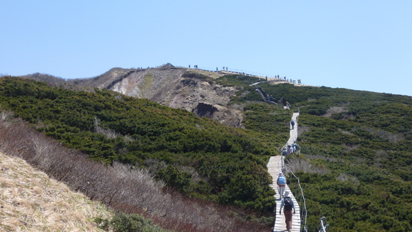 今年のゴールデンウイークは中国地方:鳥取県の名山・大山を目指す。早朝、岡山から高速道路を乗り継ぎ、大山を目指す。途中渋滞もあって心配したが、予定どうり登山口につく。駐車場はかなり混んでいた。すぐ夏山登山道の登山口がある。天気は良い。いよいよ出発。登山道はよく整備され木の階段が続いている。 ![]() ( 夏山登山道の登山口 ) ( 登山道はよく整備されている) |