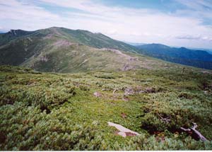 山頂部は平らで、比麻奈山方面までハイマツの高原だ。