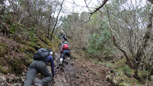 ロープウエイ山頂(7:50)―(8:05)石鎚神社成就社(8:15)―八丁坂コル(8:30) ―(9:20)試しの鎖(9:45)―前社森(9:50)―夜明峠(10:20) ― 二の鎖元(土小屋分岐)(10:47)―(11:20)山頂(弥山)ー天狗岳(11:46)往復 山頂(弥山)出発(12:15)― 二の鎖元(土小屋分岐)(12:45)―夜明峠(13:10) ―前社森(13:27)― 八丁坂コル(14:10)― 石鎚神社成就社(14:30) ― (14:50)ロープウエイ山頂駅 (弥山まで) 登り 3:30 下り 2:35 |
