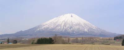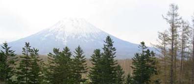 今日は天気が良い。羊蹄山が見えてくる。真狩方面から見る羊蹄山は少しゆがんでいる。