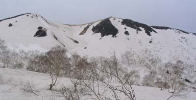 ニセコ方面から見る羊蹄山のほうがきれいに思う。 ![]() ニセコ方面からみる羊蹄山 昼過ぎ、ニセコ道の駅着。 ここの道の駅は洋子にとってはニセコ登山より、ずっと楽しみなのだ。 今年も、花の苗、根わさび、つけものを買い、コロッケ、いもだんご、きんつばなどを食べ 約1時間ゆっくりする。 五色温泉に着く。遊歩道からわずかにイワオヌプリの山頂が顔をだしている。 ![]() 平坦に見える右手がイワオヌプリの山頂 4本爪の簡易アイゼンをつけ登山開始。雪はしまっている。 最初の急斜面を登るとダケカンバの雪原となる。イワオヌプリの全容が姿を現す。 ![]() 右手がイワオヌプリの山頂 平坦な雪原の中を夏道に沿って左にルートをとる。いよいよイワオヌプリの急斜面。 トラバースぎみに夏道の雪の溶けた尾根の方へ登る。夏道にでる。雪がとけたガレ場で小休止。 アイゼンをとる。ここからは夏と同じ状態。山頂が見える。 ![]() イワオヌプリの山頂へ向かう 無事山頂につく。風が強く寒い。 写真を撮って早々に下山する。下山はアイゼンもつけず、一気に下る。45分で五色温泉に戻る。 ![]() イワオヌプリの山頂での記念写真 |