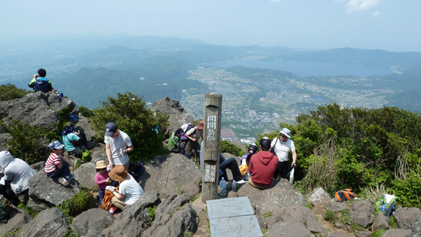 ゴールデンウイーク、北海道から抜けだし鹿児島に飛ぶ。鹿児島で一泊、朝、開聞岳を目指す。近づくにつれて開聞岳が大きく聳えてくる。登山口のあるふれあい公園では、広い芝生が臨時の駐車場になっていた。山道の登りに入る地点には2.5合目の標識がある。 ( 開聞岳が大きく聳える ) ![]() (芝生の臨時駐車場) (登山口 ここは2.5合目) 林の中の道はよく整備され、標識もしっかり設置されている。 (7合目をすぎると視界が開けてくる・・・屋久島など今日は見えない) 登山道の斜面にタツナミソウの群生があった。そして、木に白い小さな花。北海道では見られない花である。あとで調べてみるとハンノキとわかる。とても可憐な花だった。 (タツナミソウ) (ハイノキの花) いよいよ展望が開ける。指宿方面から枕崎方面へぐるっと回って山頂を目指す。 (指宿方面) (枕崎方面) 山頂直下の神社を過ぎ、山頂に着く。たくさんの人でにぎわっている。展望は雄大。遅い昼食を食べ、下山する。 (山頂の賑わい 池田湖が見える) | ||