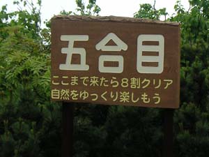 | 登山口(9:30)ーーー(11:40)4合目ーーー(12:20)5合目(12:30)ーーー(13:30)山頂(14:00) ーーー(14:50)5合目(14:55)ーーー(16:40)登山口 登り:4時間 下り:2時間40分 全行程7時間10分 | ||