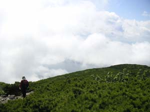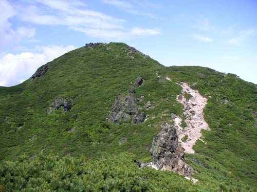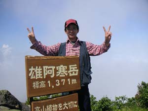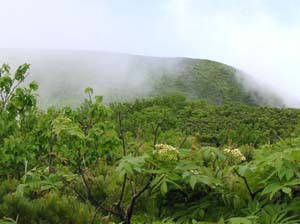 | 感想: 登山口には2台の車のみ。天気は良くないけれど、夏の登山シーズンの最盛期 にもかかわらず、少ない。山で会った人は単独行の二人と二人パーティの計4人。 日本百名山の阿寒岳なのに。雌阿寒に負けているよう。阿寒・摩周を 旅行すると雄阿寒がすばらしい。しかし簡単に登れて、変化にも富む雌阿寒の方が 人気がある。日本百名山の深田久弥が登ったのは雄阿寒岳である。 前から登らなくてはと思っていたが、今回やっと実現した。 展望はあきらめて登り始めた。せめて雨が降らないようにと願っていたが、 山頂では晴れた。実に幸運! ![]() ( 雄阿寒岳 左に雌阿寒が見える ) |