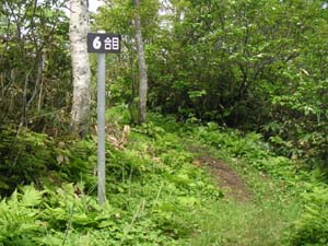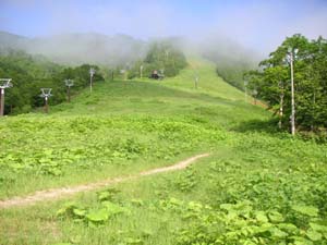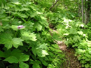 のはなるほどと思う。かなりの群落ある。登山道のまわりは笹が多く、根曲がり竹の竹の子 がたくさんあった。途中でかなり採れた。少し細いけれど十分食べられる。 登るとき、3人ほどしか会わなかったので、スキー場のゲレンデを登るので人気がない山かなと思っていたら、 下山時はたくさんの人とすれ違い、結構登山者の多い山だった。 |