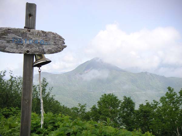 天気が良くなるようなので、来馬岳に行くことにする。この山は登別温泉の奥にあるカルルス温泉のスキー場の上にある。 まだ登っていない山ではあるが、1ヶ月ほど前、シラネアオイのツアー登山の案内が新聞に出ていた。 もう、花の時期は終わっているが少しは残っているかもしれない。 ( 入山届けと登山道の標識 ) ( 来馬岳の案内板 ) スキー場の入り口に登山案内板があり、そこが、登山道の始まりだ。道はゲレンデの中に続いている。 左手が第二リフトで、正面に見える小屋が第一リフトの終点だろう。遠くゲレンデが続いているが かなり急に見える。ゲレンデ横の木立のところどころにタニウツギのピンクの花が咲いている。 だんだん青空が見えてくる。期待できそうだ。 ( 左手が第二リフト ) ( タニウツギ ) 第二リフト右手の急な道を登る。踏み跡がしっかりついている。リフト終点につく。 ここでスキーゲレンデは終わり。来馬岳の標識から少し左に入ったところが5合目。 ここから笹の山道がつづく。ところどころにシラネアオイの群落がある。ほどんとの花はもう終わっている。 それでも、まだ咲いているところもあった。シラネアオイのほかにツバメオモト、サンカヨウ、 エンレイソウの花が咲いていた。 ( 笹登山道 ) ( シラネアオイの群落 ) ( ツバメオモト ) ( サンカヨウ ) ![]() ( 咲き残っていたシラネアオイの群落 ) ( エンレイソウ ) ( シロバナエンレイソウ ) 最後の登りは思ったより、つらい。やっと、山頂に着くと、オロフレ山が見える。 しかし、他の山は雲の中に隠れている。噴火湾や倶多楽湖なども見えるはずなのに・・・。 ( 来馬岳山頂からオロフレ山を見る ) 昼食をとり、晴れるのを待つ。しかし、ますます雲が多くなり、オロフレ山も見えなくなっってしまった。 残念だが、あきらめて下山する。下りはずいぶん楽だった。下山すると空は快晴になっている。 ちょっぴり、皮肉な登山になってしまった。こんなこともあるさ。あとは温泉に期待しよう。 | ||