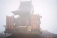 やっと、山頂に着く。雨はやむ。見晴らしはだめ。山頂に小さなお堂には虫がいっぱい