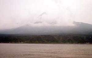 ふもとが近づくにつれて、天候はやや回復してくる。港が見えたとき、少しだけ