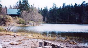 水辺の岩に囲まれた真澄沼は名前のとおり澄んで、