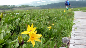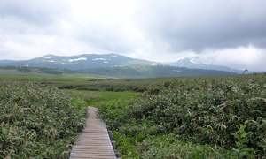 感想 : 花の時期に合わせて登山することは難しい。今回はエゾカンゾウの花やアヤメの時期には早すぎた。その代りワタスゲが美しかった。そのほか、湿原の中にはハクサンチドリ、キンポウゲ、チシマフウロ、スミレ、ヒオウギアヤメなどの花が咲いていた。尾瀬に負けない美しい湿原である。ただ湿原は蚊が多いので虫対策が大切。 |
