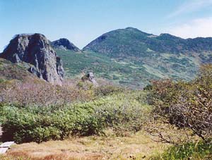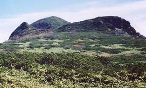 (写真上:前岳湿原から夕張岳山頂をみる)