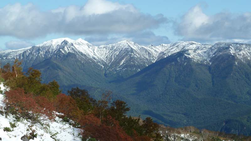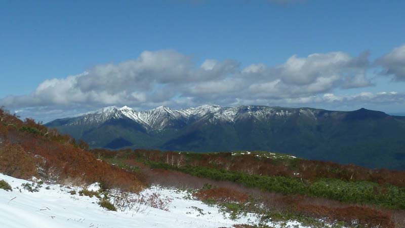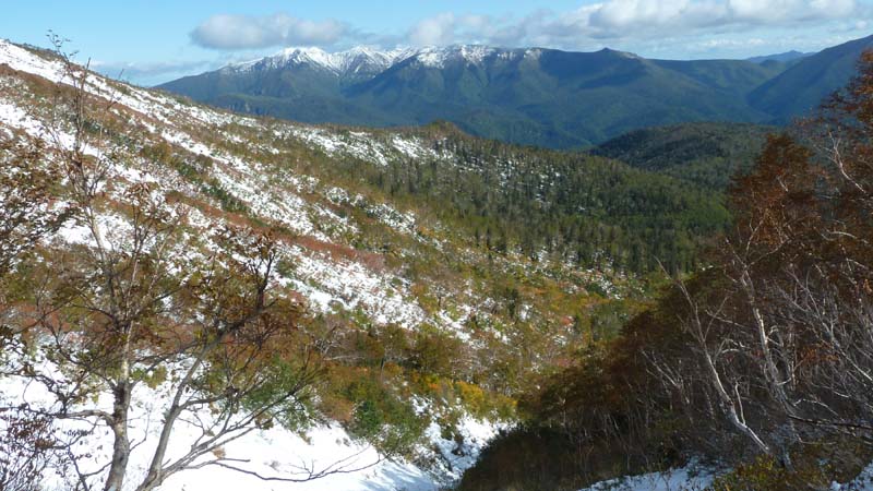 | 感想: 何度も訪れているこの時期の銀泉台。雪にはびっくり。そのため紅葉の美しさー真っ赤な赤は無かった。 その代わりに輝く雪景色。北大山岳部歌に「新雪輝く山々は・・・」と歌われているニセイカウシュッペ山の美しさに感動した山旅であった。 |