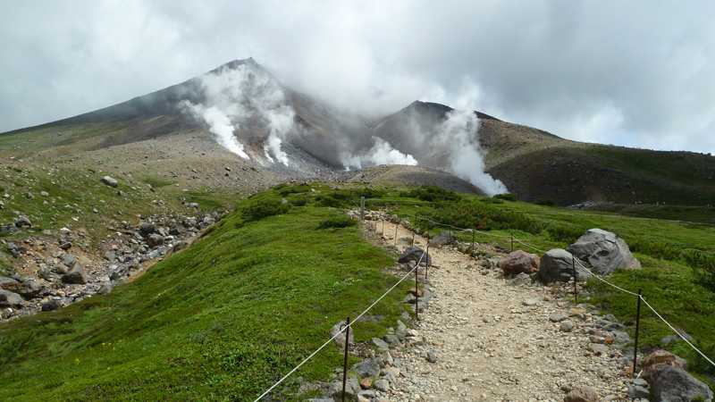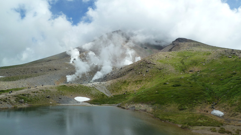 ロープウエイ姿見駅(11:00)ー(11:20)姿見の池-(11:50)夫婦池-12:00)チングルマ群生地(12:20) -(12:30)夫婦池ー(12:40)ロープウエイ姿見駅 行動時間 1:40 |