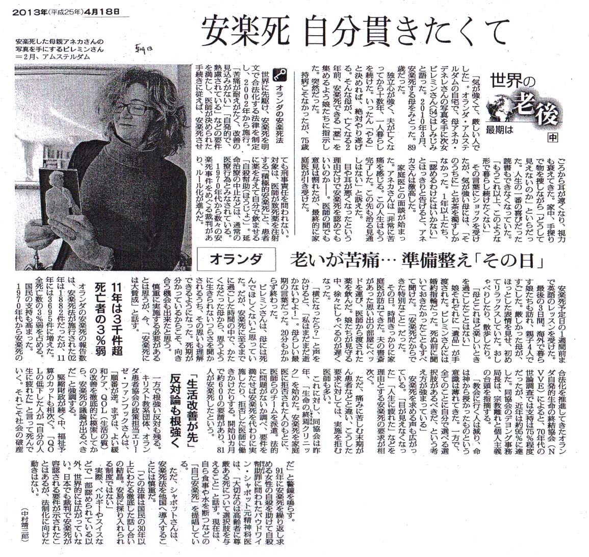 ということに思える。安楽死を認める国、オランダ・・・それは自殺を認めているようにも思える。(H25.4.18)