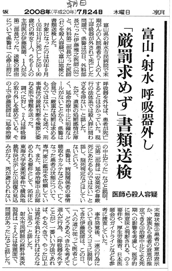 富山・射水市民病院の呼吸器外しー その後 −富山・射水市民病院で呼吸器を外した問題が、2年経ち、やっと結論が! |