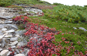 天気予報は晴れ・曇り。晴れることを期待して出発。層雲峡、大雪湖を過ぎ、糠平方面に向かう。高原温泉の別れ道を越え、少しいくと三国橋の所に標識があり、林道に入る。まもなくゲート。前もって上川中部森林管理署(Tel 01658−2−2001)で聞いておいた番号で開けて入る。道はそれほど悪くない。登山口に着く。すでに5台ほど車が駐車している。 ![]() ( 登山口 駐車場) (案内図) 準備をして出発。すぐ、1回目の丸木橋。2回目の橋は1回目と同じような丸木橋もあったが、少し上流にある太い倒木を利用するように 新しい道が出来ていた。太い倒木は渡りやすい。 ![]() ( 標識と最初の丸木橋) (2回目の橋は倒木で出来ている) 30分ほどで 鳴兎園に着く。ここにはナキウサギがいるようであるが、今日は声も姿も見えない。なかなか、苔におおわれた、日本庭園のようなムードのあるところだ。 ![]() ( 鳴兎園) 岩の大崩れ、小崩れを過ぎると左手にユニ石狩の山頂が見えてきた。十石峠の直下から左手に近道をとおり最後の登り。振り返るとニペソツが見えてくる。 ![]() ( ユニ石狩の山頂が見えてくる) ( 振り返るとニペソツ、ウペペサンケ ) すでにウラシマツツジの紅葉がはじまっている。ふと見ると、こんな時期に遅咲きのコマクサがあった。 ( ウラシマツツジの紅葉 ) ( 遅咲きのコマクサ) 50分ほどで山頂に着く。実に雄大な眺めだ。表大雪と高根が原の稜線。北ア・槍ヶ岳の穂先にそっくりな鋭い二ペソツ。そして目前に音更と石狩岳の稜線。この山が石狩川の源。 ![]() ( おもて大雪の遠望) ![]() ( 平坦なウペペサンケの山頂と槍ヶ岳のような二ペソツ、下に十石峠) ![]() ( 石狩岳ー音更山の稜線) 青空ではないが、山々ははっきり見える。しばらく、雄大な景色に見とれる。・・・ウペペサンケの山頂は登ったときも平らな山頂が長かった。ニペソツは槍の穂先とそっくりだ。石狩岳は若いとき登っただけで最近は登っていないな・・・。心残りだったが、記念写真を撮って下山。下山時には十石峠まで行ってもう一度ユニ石狩の山頂を見上げた。 ![]() ( 石狩岳をバックに記念撮影) ( 十石峠から見るユニ石狩の山頂 ) |